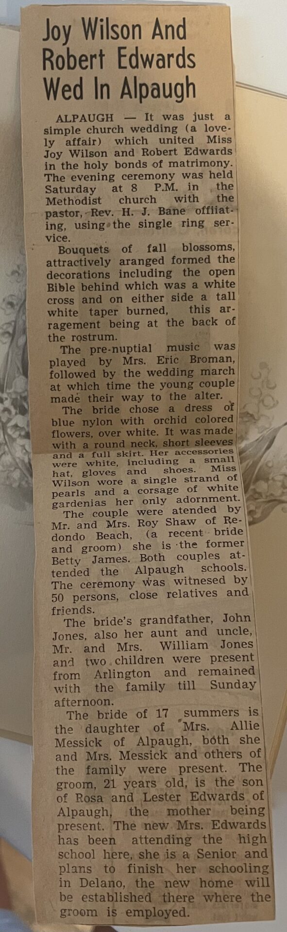The American dream has always been a reality in our family. My paternal grandparents Robert Lee ‘Bob’ and Joy Edwards resided in Delano, CA as did my maternal grandparents and great grandparents. It takes a village to raise a child and I came from a great one! My grandpa Bob worked in the fields in the earlier days before he retired after 35 years from Delano Rock and was a part of the Teamsters Union. My grandma Joy worked for First Interstate bank starting out as a teller, after raising five children, and worked her way up to a loan officer, before retiring back to Alpaugh, CA with my grandfather Bob, where they spent their golden years on the Edwards family ranch. She encouraged me to pursue a higher education.